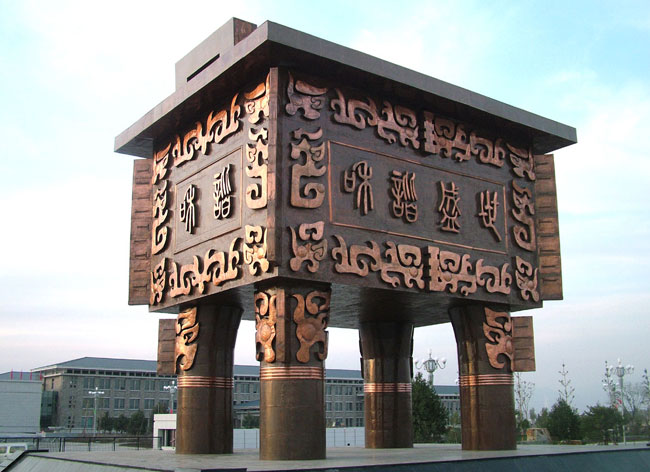 簡介:2008年,隨州市古編鐘文化發(fā)展有限公司為寧夏銀川市人民政府制作了高達(dá)12米的“和諧盛世寶鼎”,成為城市的一大景觀,該鼎用進(jìn)口優(yōu)質(zhì)紫銅板鍛造而成,它重達(dá)48噸。在國內(nèi)這樣規(guī)模的大鼎尚屬第一。